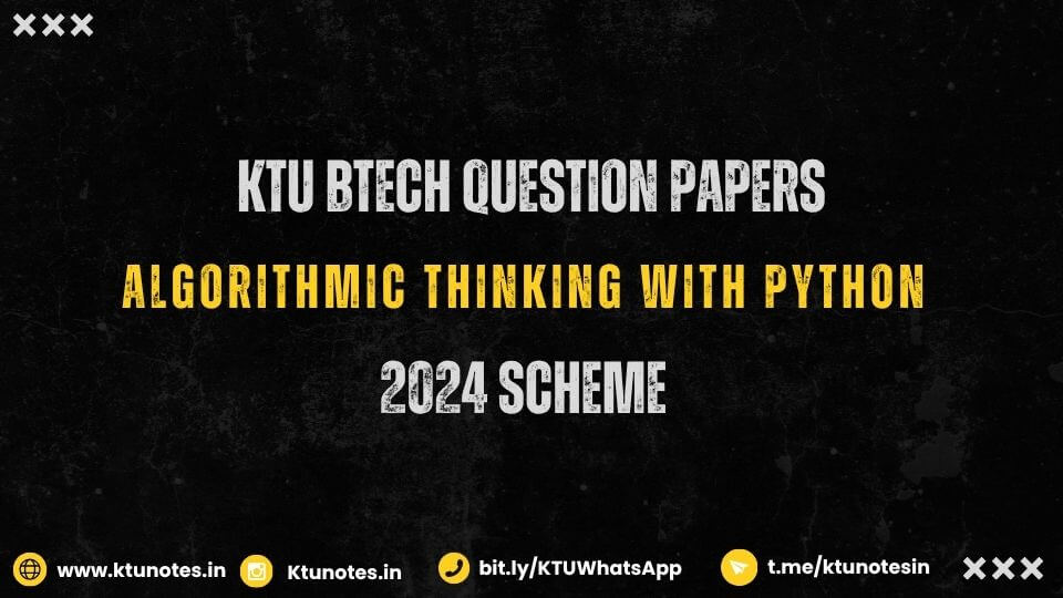 2024 Scheme Question Papers (2024 Scheme) π October 26, 2025 KTU Algorithmic Thinking with Python Question Papers | 2024 Scheme KTUCEST105β Question PapersBrowse by year and typeAll typesUniversity PapersSolved PapersModel PapersAll yearsπ€ Contribute Your Question PaperUpload notes, QPs & study materials.π§ For copyright or removal requests: contact@ktunotes.in Tags: ktu question papers